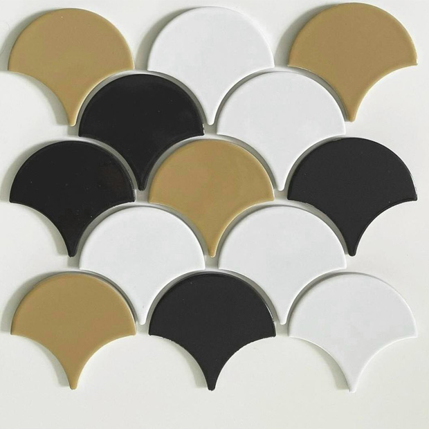 Cũng giống như các loại gạch trang trí khác, ngoài chất liệu truyền thống là gốm sứ, thì hiện nay gạch vảy cá còn được làm từ các loại vật liệu sau : Porcelain phủ men, Đá tự nhiên (natural stone), Thủy tinh